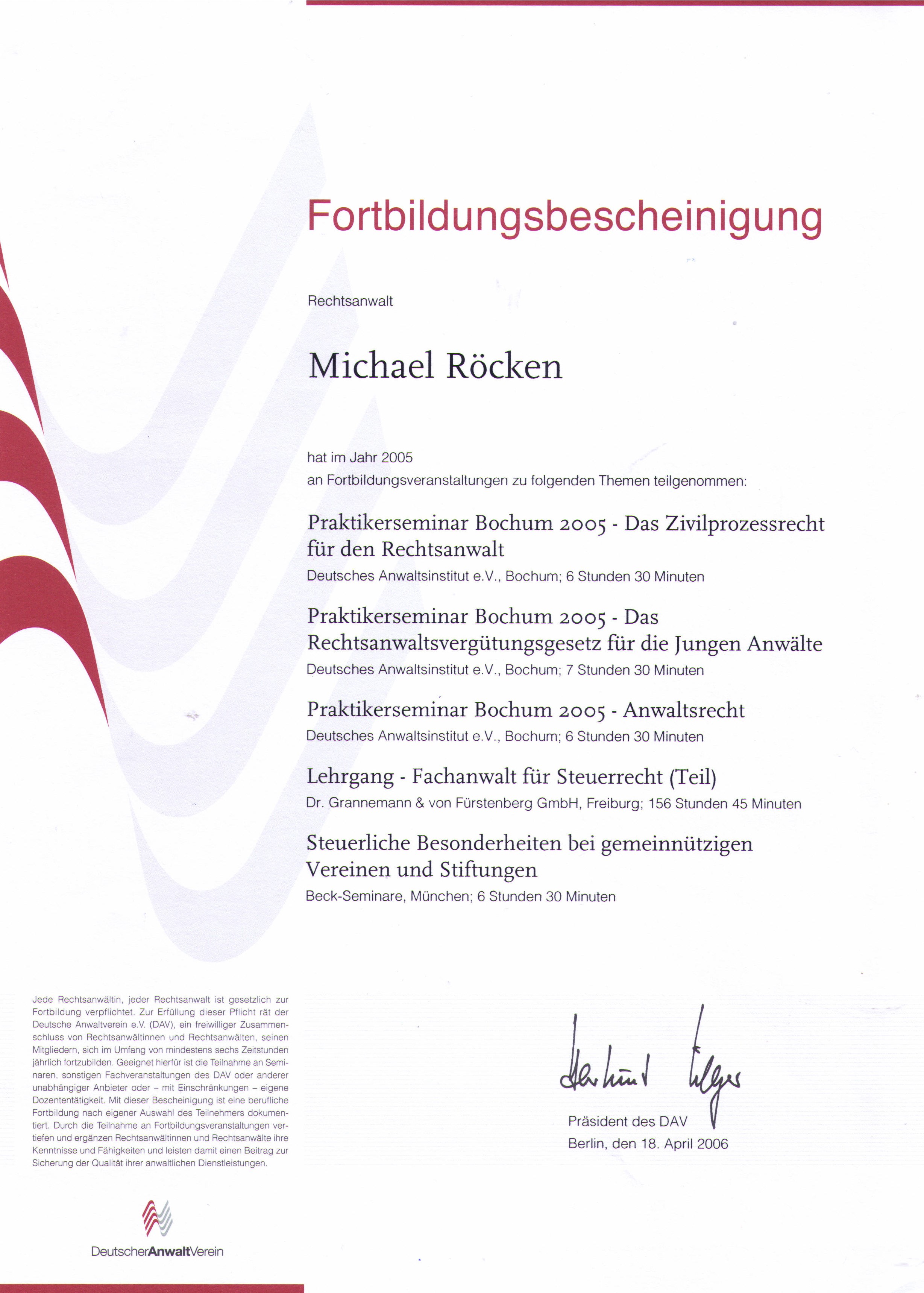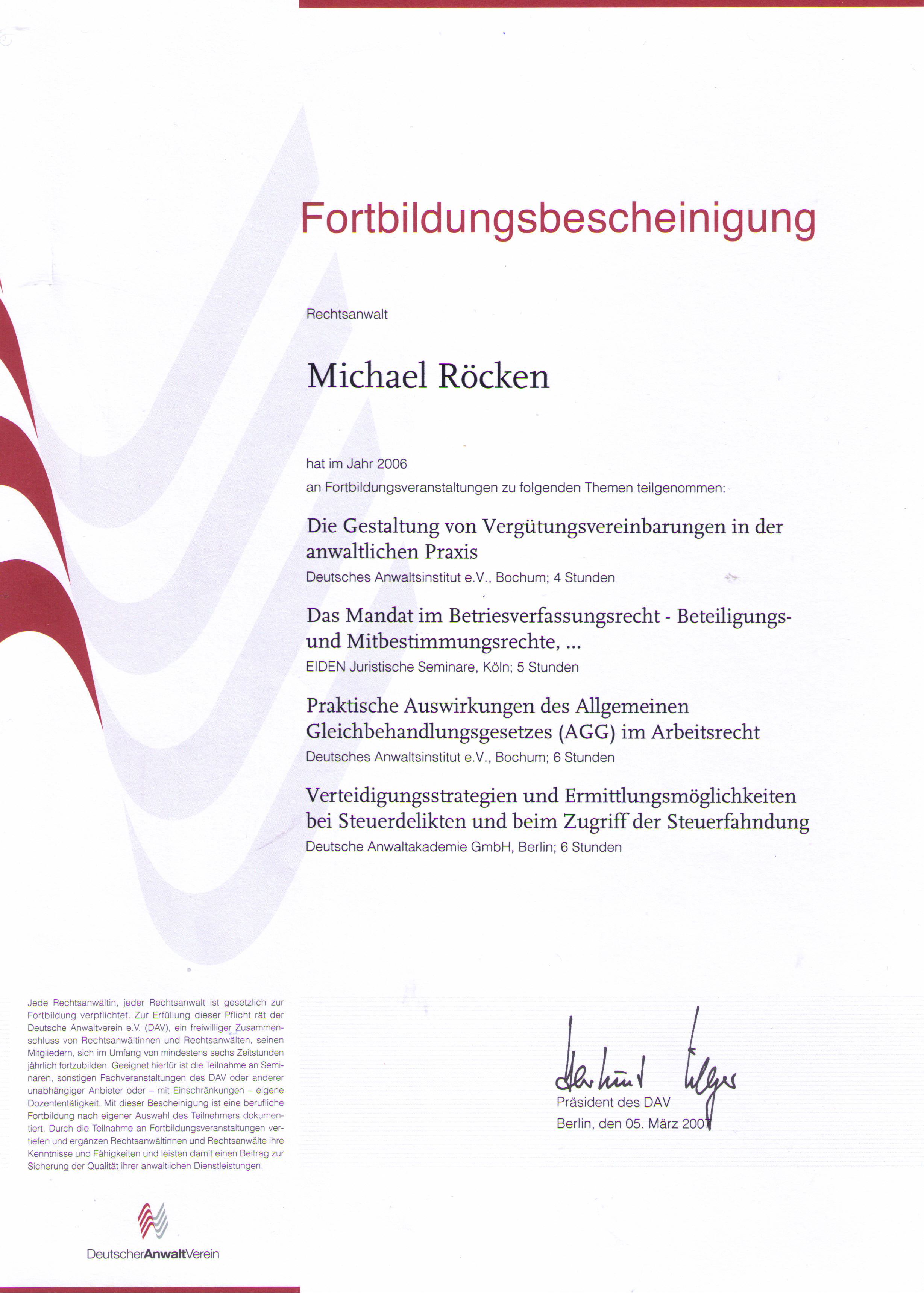 Meine Fortbildungsbescheinigungen des DAV können Sie einsehen:
